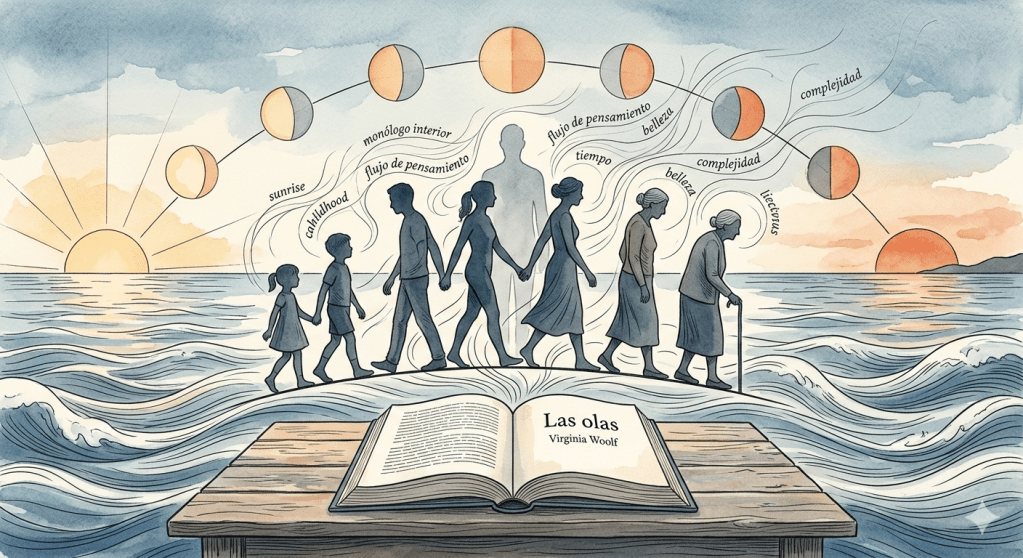 Aunque suponga un cierto distanciamiento de la línea crítica académica, yo diría que Las olas, asumiendo y combinando elementos de las dos obras citadas, propone una reflexión sobre el paso del tiempo sobre la base del flujo de pensamiento de sus protagonistas. Quizá la novedad de su planteamiento provenga, entonces, de la combinación de ambos factores en un único texto.
